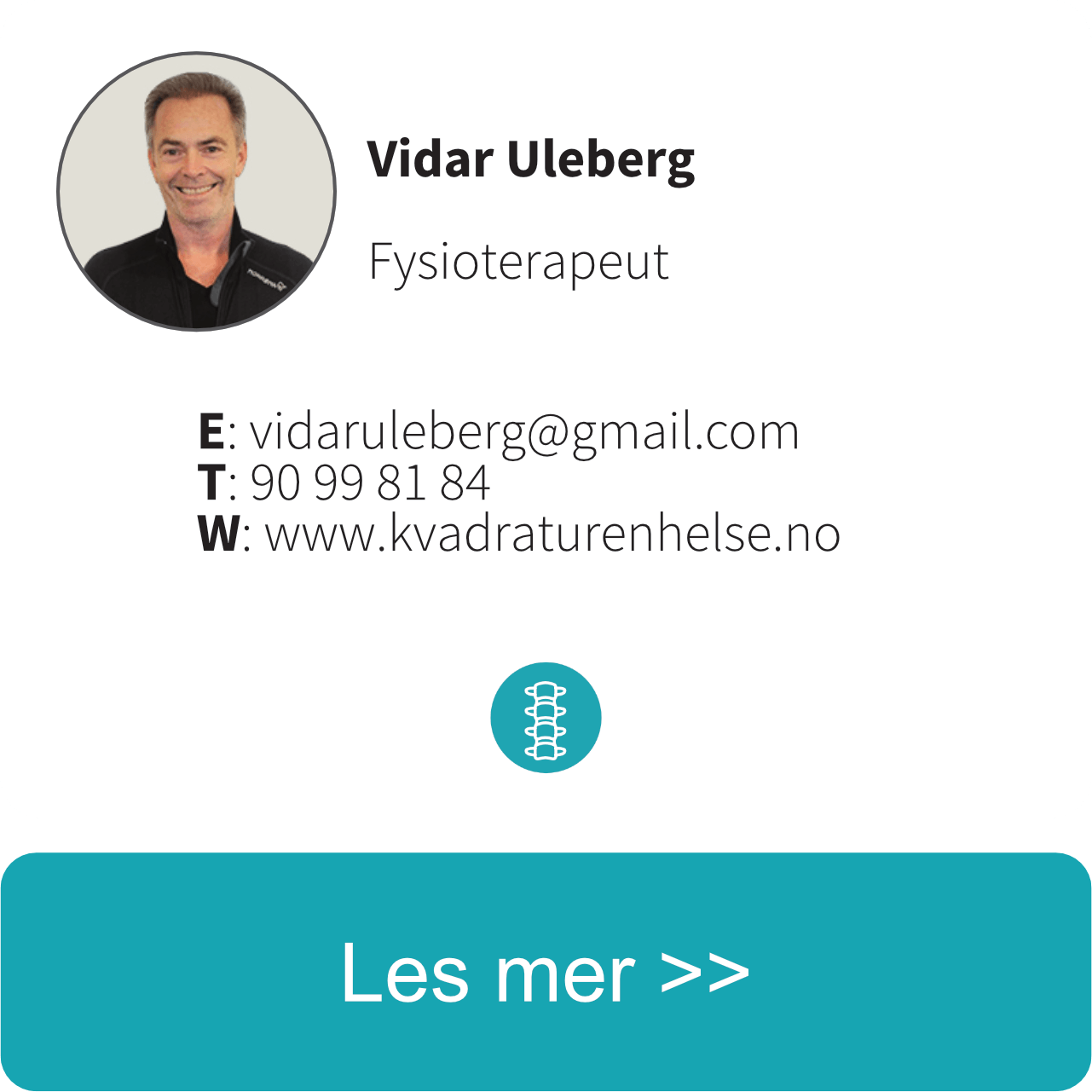 Kvadraturen Helse består av 4 fysioterapeuter. Vår sammensatte kompetanse gjør at vi kan behandle det meste av ulike typer rygg-, muskel-, og skjelettplager. Nevrologiske plager kan ha utspring i disse tingene, noe som gjør at vi også kan behandle ulike typer av dette. Vi er også autoriserte til å både ta og vurdere røntgenbilder. Vi har 48 timers behandlingsgaranti, som betyr at du raskt får time hos oss. Ta kontakt med oss så hjelper vi deg med dine plager.
